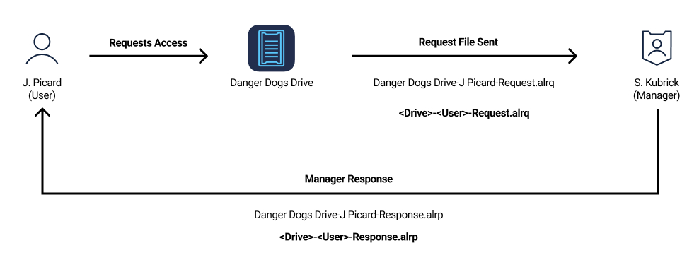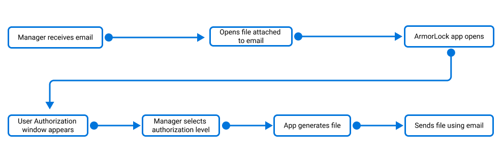 We tried a few ideas, such as QR codes, and ultimately we settled on using email. This is similar to how users send their User IDs to managers when requesting access normally. The engineers developed a way for ArmorLock to create request and response files and automatically compose an email with them attached. This method facilitates sending all the information our MNE users said they wanted to see.