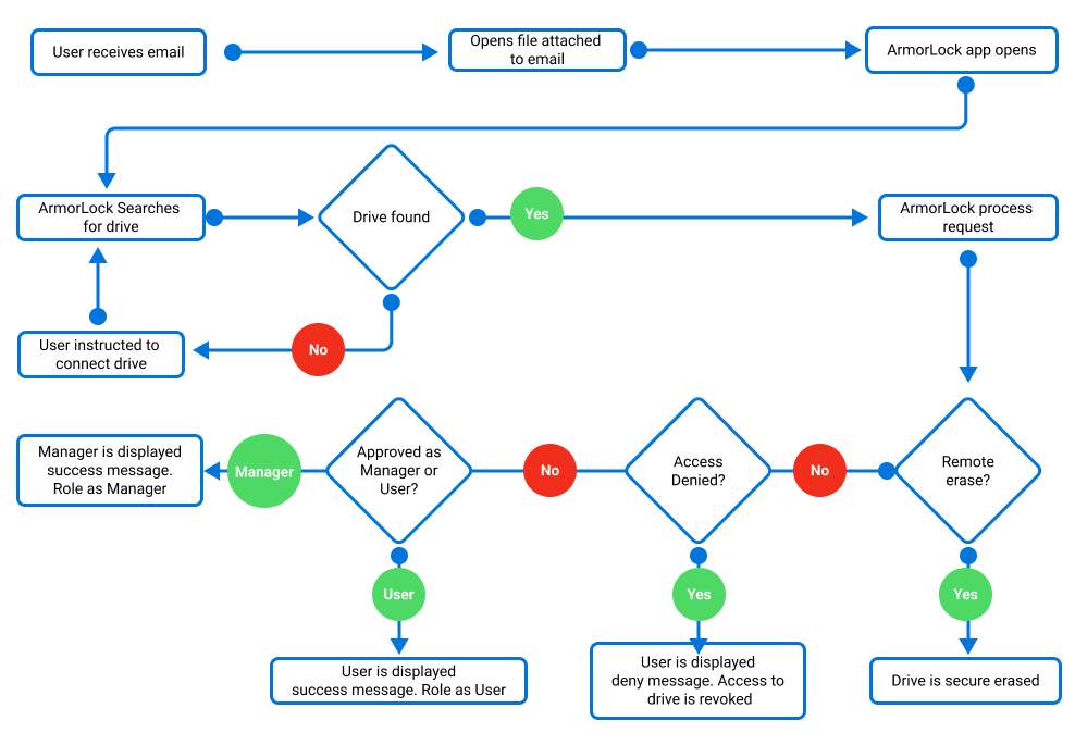 Users that want access to a drive must first install ArmorLock on the Android, iOS, or MacOS device they want to use. After they've set up the app, they send their User ID to the manager. The manager adds their User ID to a list authorized users, and then sends them the drive.